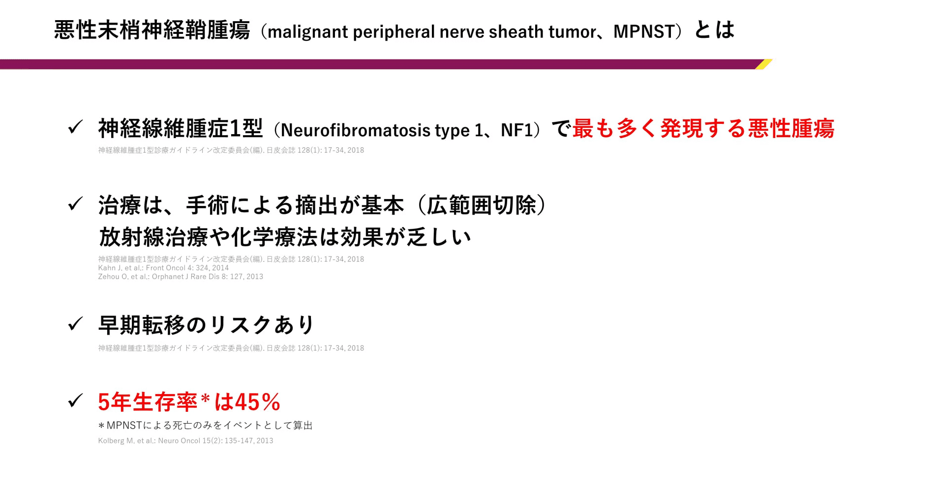 MPNSTは、NF1で最も多く発現する悪性腫瘍といわれています。