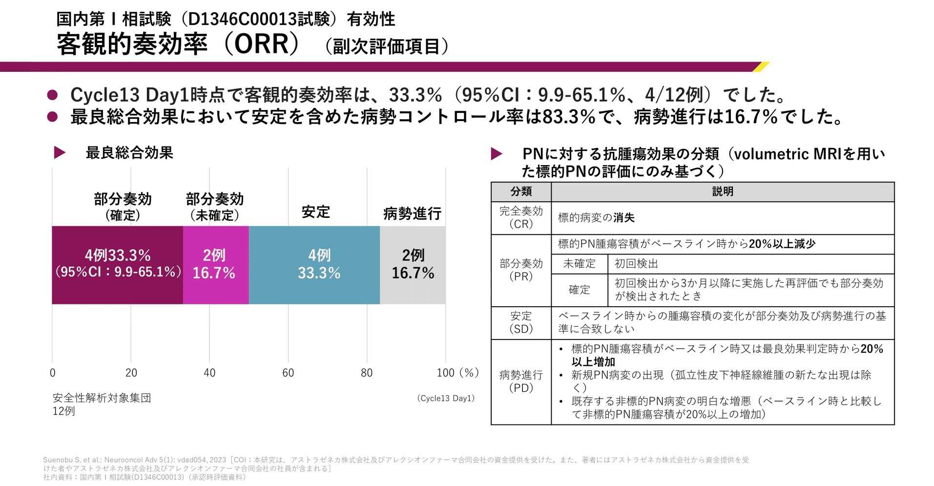 また、最良総合効果において安定を含めた病勢コントロール率は83.3%でした。