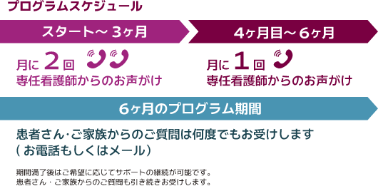 ご登録いただいた方には、専任の看護師から定期的にお電話させていただきます。また、患者さん・ご家族からのご相談も受け付けています。